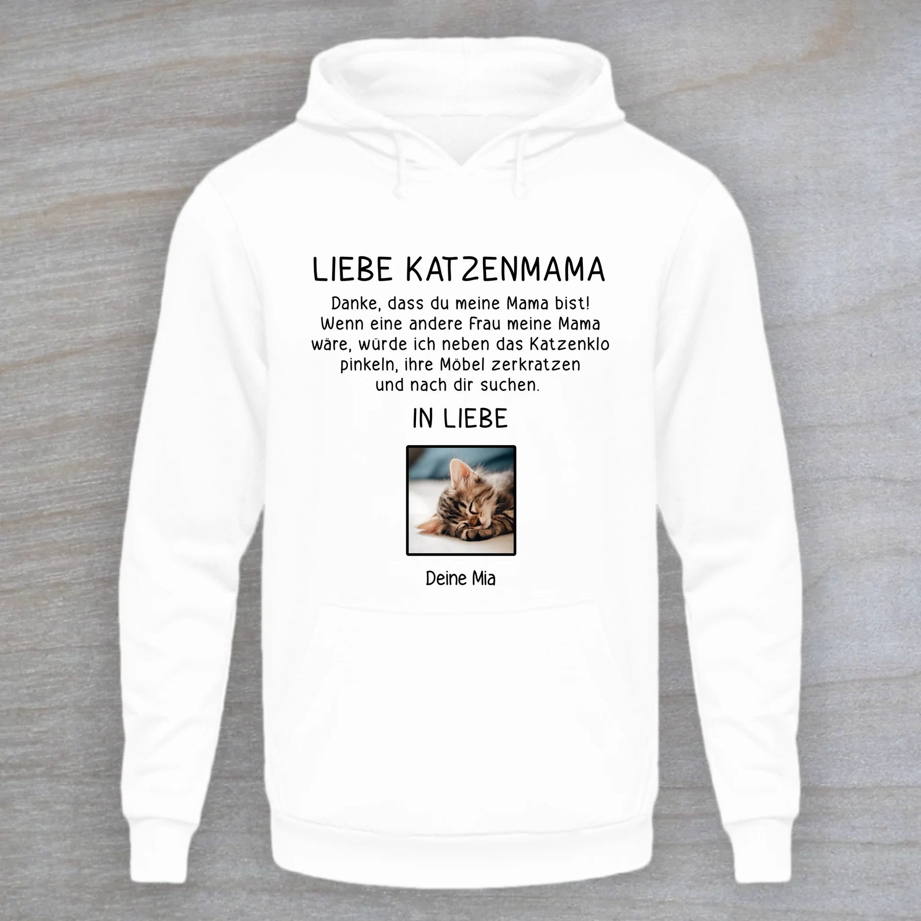 Der "Liebe Katzenmama" Hoodie ist ein perfektes Geschenk für deine Liebsten oder für dich selbst. Alle unsere Produkte sind für dich personalisiert und werden in erstklassiger Qualität hergestellt.